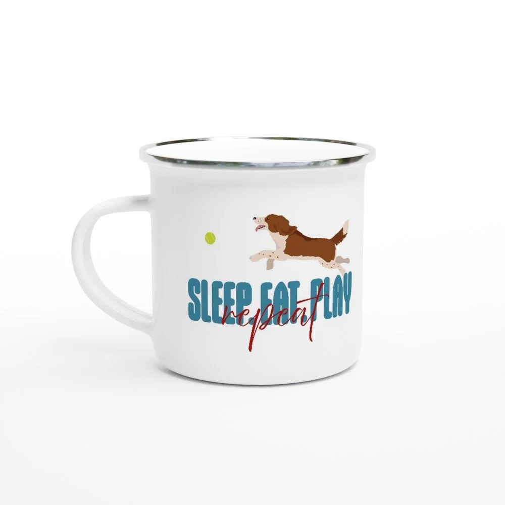 Life with a Welsh Springer Spaniel is refreshingly uncomplicated. Sleep. Eat. Play. celebrates that familiar rhythm. A lightweight mug that fits right in.