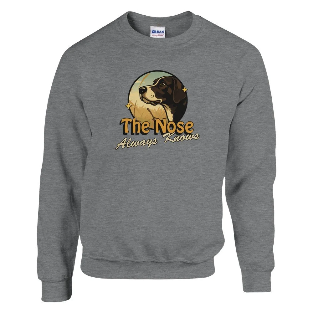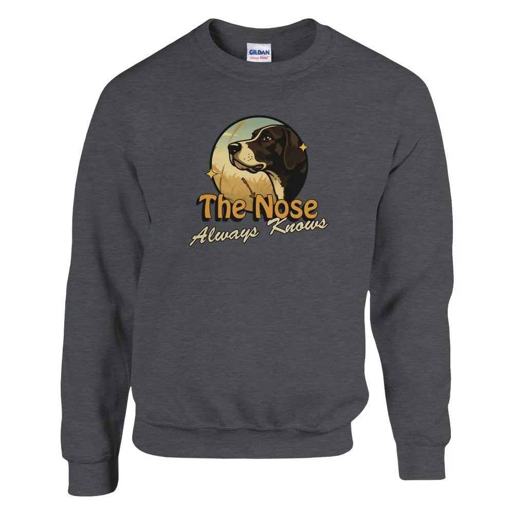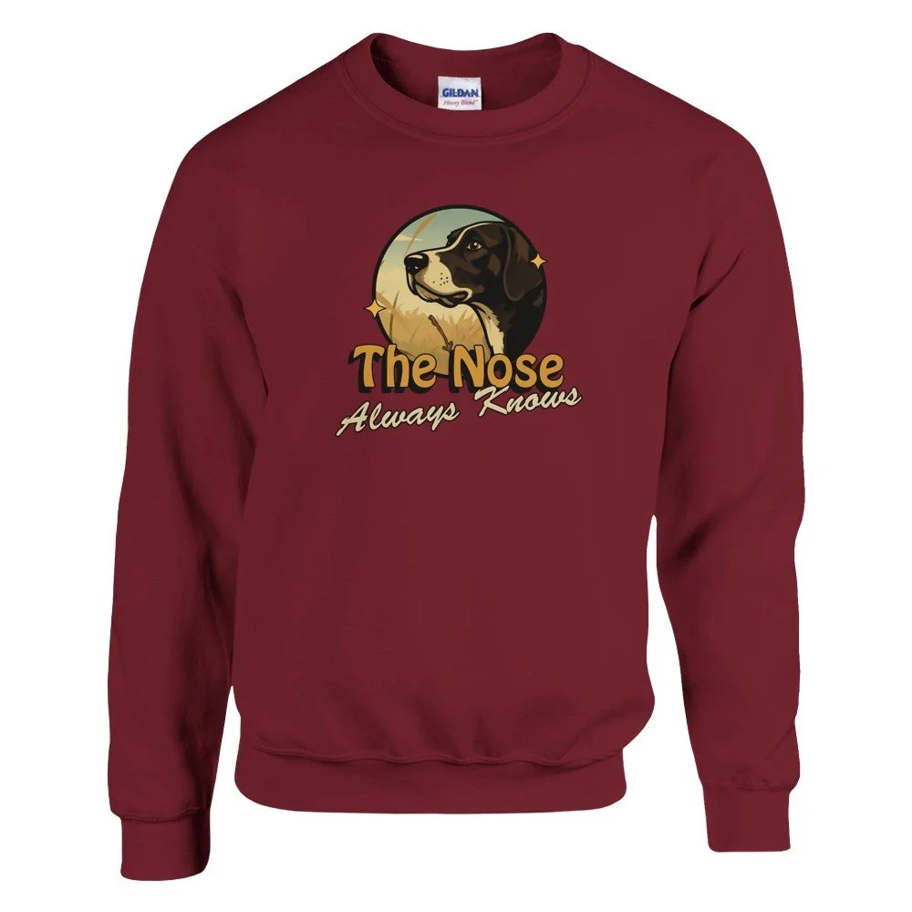 When it comes to instinct, the nose always knows. This retro-style crewneck brings subtle humour to everyday wear. Comfortable and dependable.