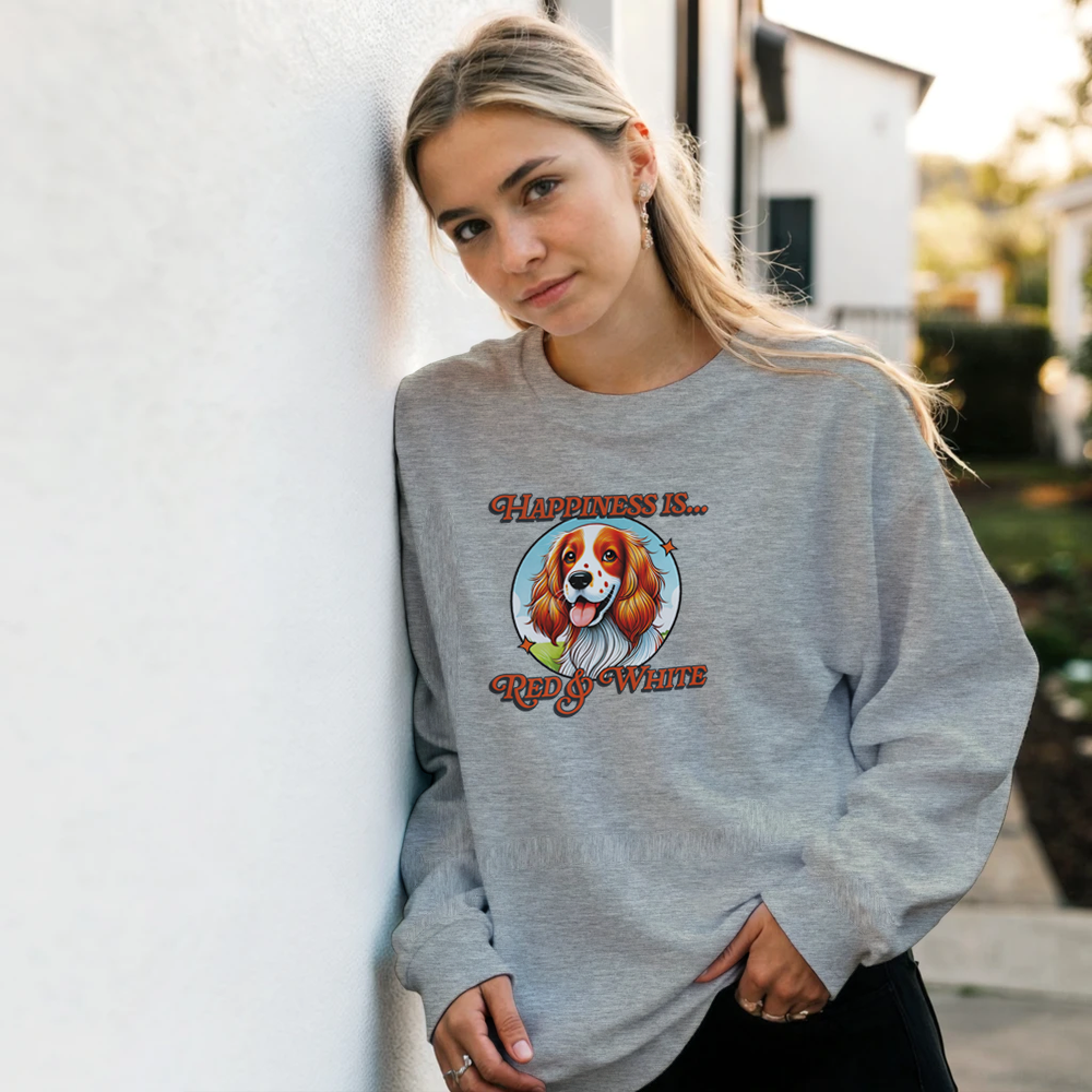 Welsh Springer Spaniel lovers know that happiness is red and white. This fun sweatshirt is crafted with a heavy blend of 50% cotton and 50% polyester, offering unrivaled comfort and warmth for everyday wear. Experience the softness of air jet yarn that not only enhances the feel but also reduces pilling, ensuring your sweatshirt stays looking fresh over time. Engineered with double-needle stitching at vital areas, including the shoulder, armhole, neck, waistband, and cuffs, for exceptional durability. The 1x1 rib with spandex provides enhanced stretch and recovery, making it a perfect fit for all body types. This classic fit sweatshirt is ideal for casual outings, lounging at home, or outdoor adventures, showcasing your love for Welshies. Don’t miss out! Add our "Happiness is Red and White" sweatshirt to your collection today and enjoy its cozy style and exceptional quality.