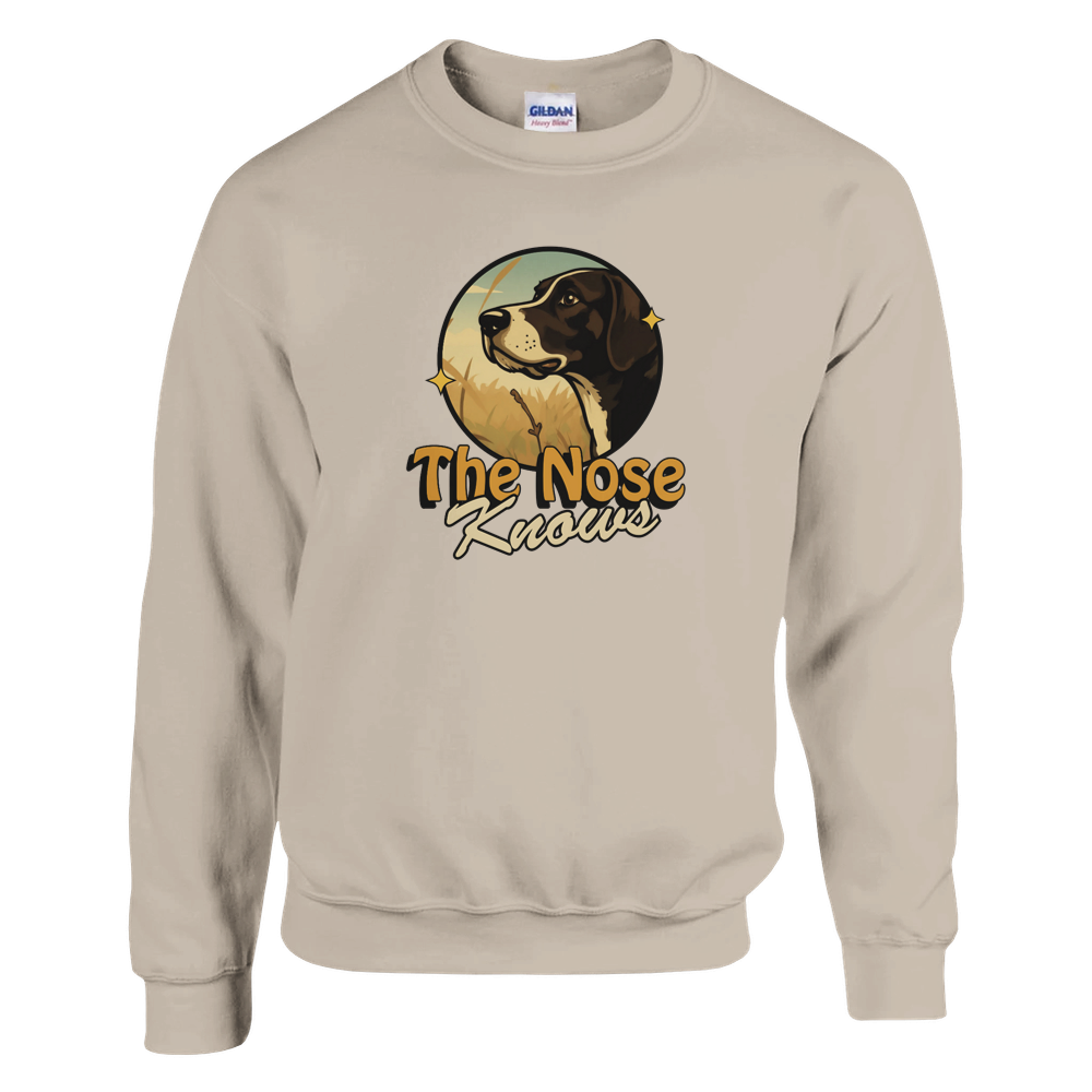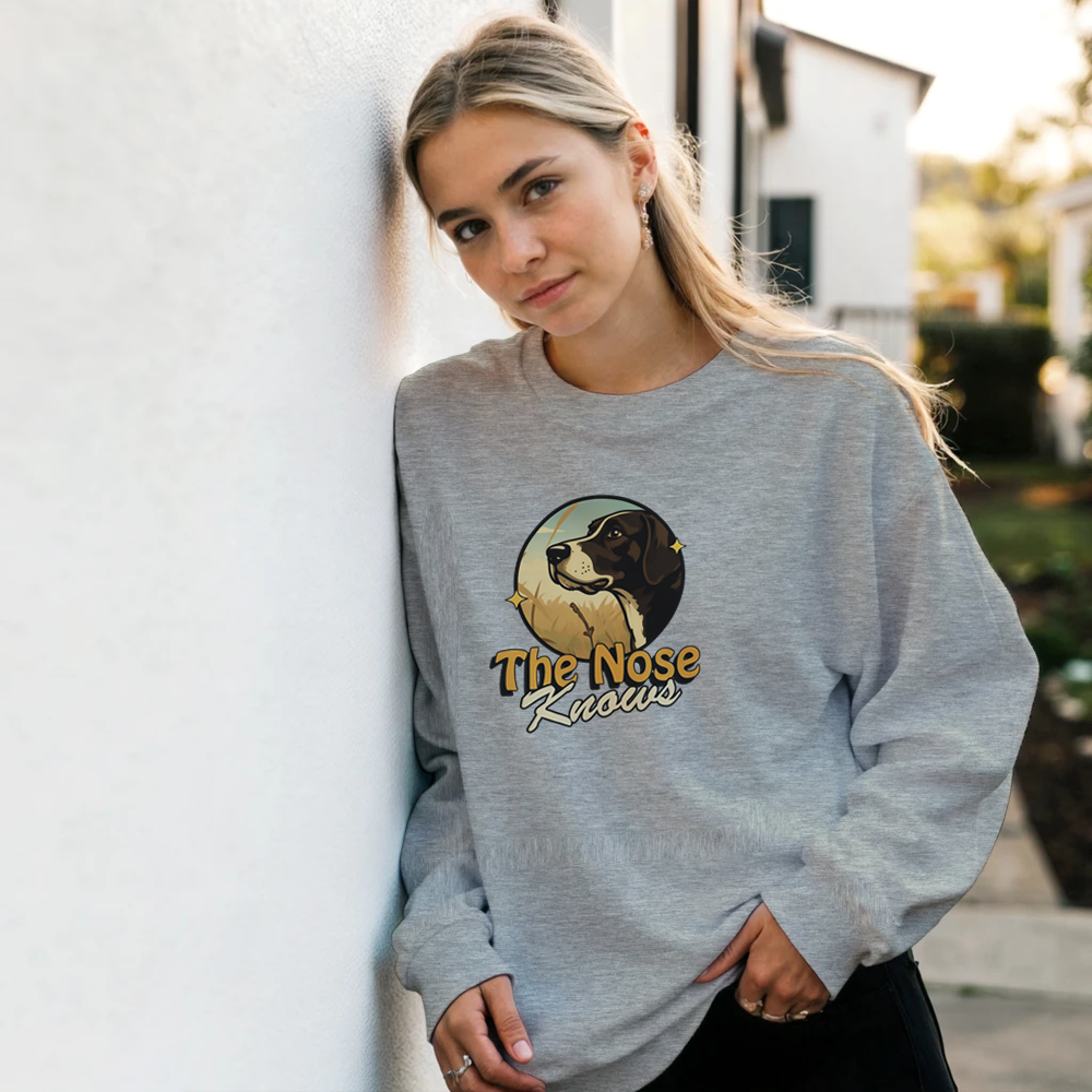Introducing our "The Nose Knows" Sweatshirt, featuring a retro-style GSP sniffing the air amidst a picturesque field. Crafted with a heavy blend of 50% cotton and 50% polyester, this sweatshirt offers unrivaled comfort and warmth for everyday wear. Experience the softness of air jet yarn that not only enhances the feel but also reduces pilling, ensuring your sweatshirt stays looking fresh over time. Engineered with double-needle stitching at vital areas, including the shoulder, armhole, neck, waistband, and cuffs, for exceptional durability. The 1x1 rib with spandex provides enhanced stretch and recovery, making it a perfect fit for all body types. This classic fit sweatshirt is ideal for casual outings, lounging at home, or outdoor adventures, showcasing your love for German Shorthaired Pointers. Don’t miss out! Add "The Nose Knows" sweatshirt to your collection today and enjoy its cozy style and exceptional quality.
