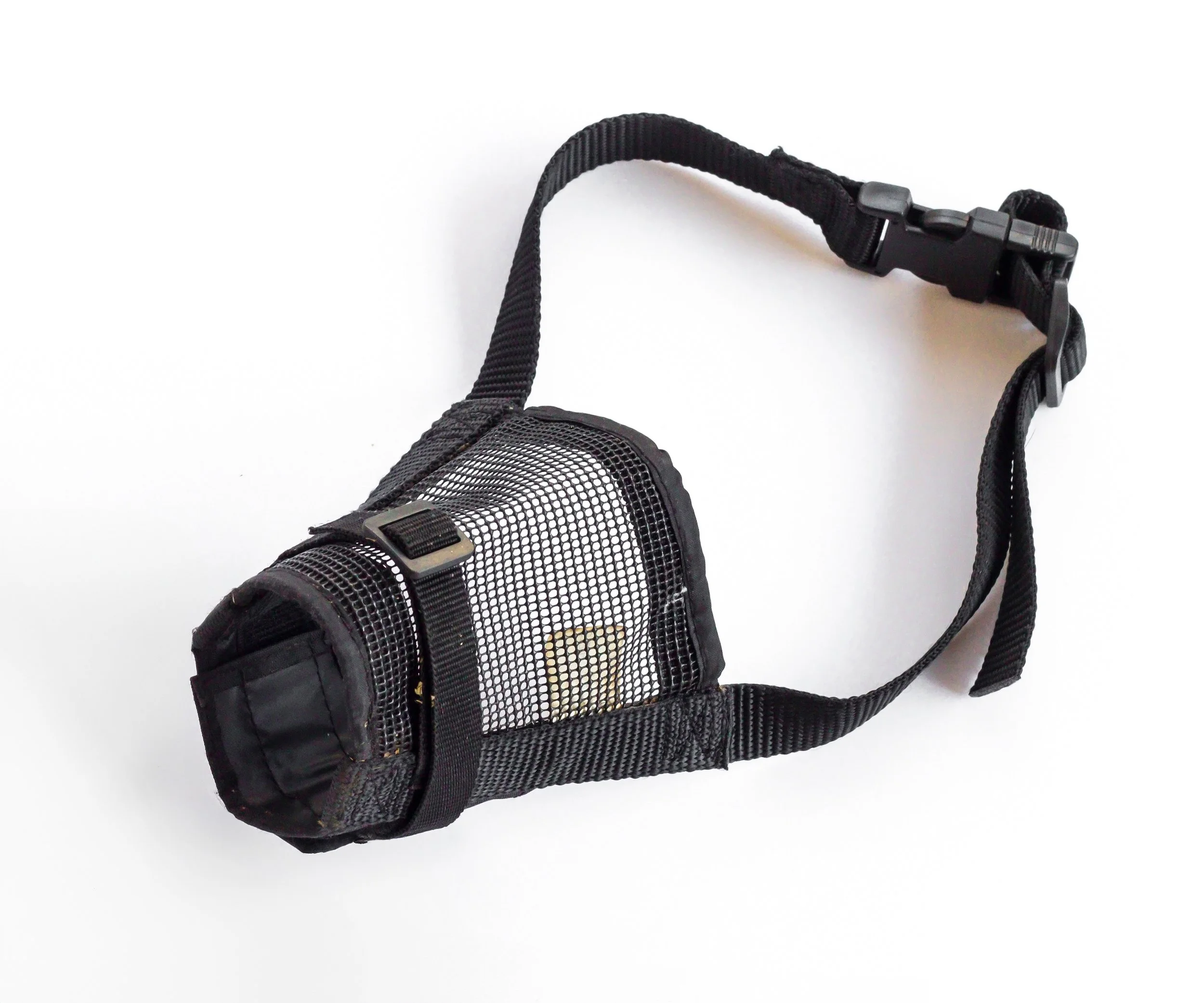 A soft muzzle is made of fabric that fits snuggly around the snout. It does restrict some panting and drinking, but many are adjustable to find the perfect fit for the dog.